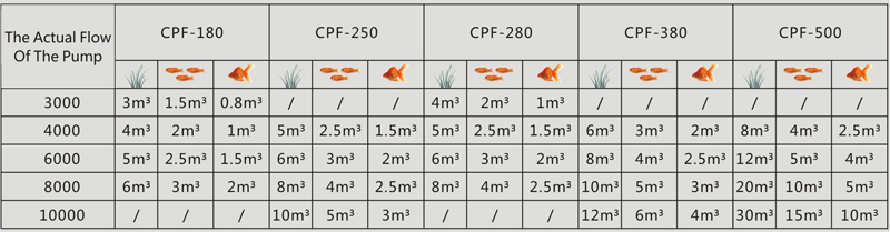 С помощью приведенной ниже таблицы, вы сможете самостоятельно подобрать необходимое по мощности оборудование для пруда: